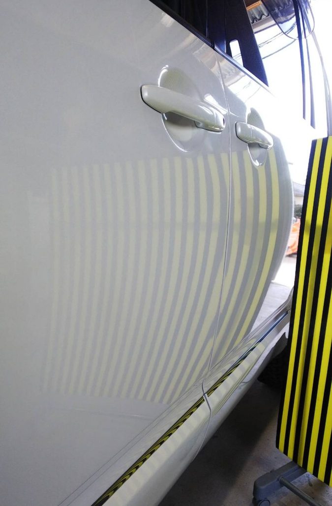 デリカD:5 、助手席ドアのデントリペアです。
