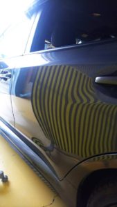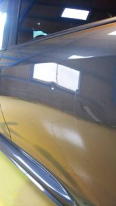 スバル WRX ドアパンチの、ペイントレス・デントリペアです。
