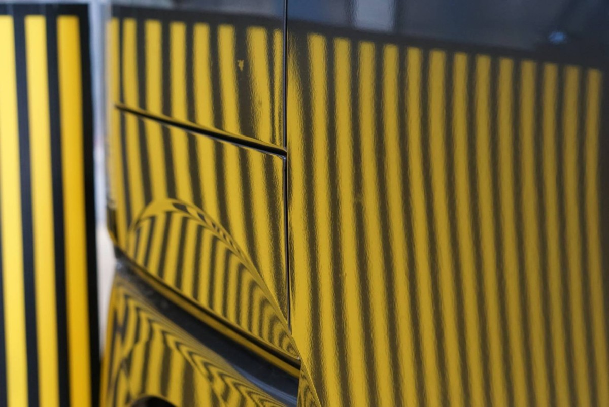 施工前、へこみにラインボードを映すとこんな感じに見えます。