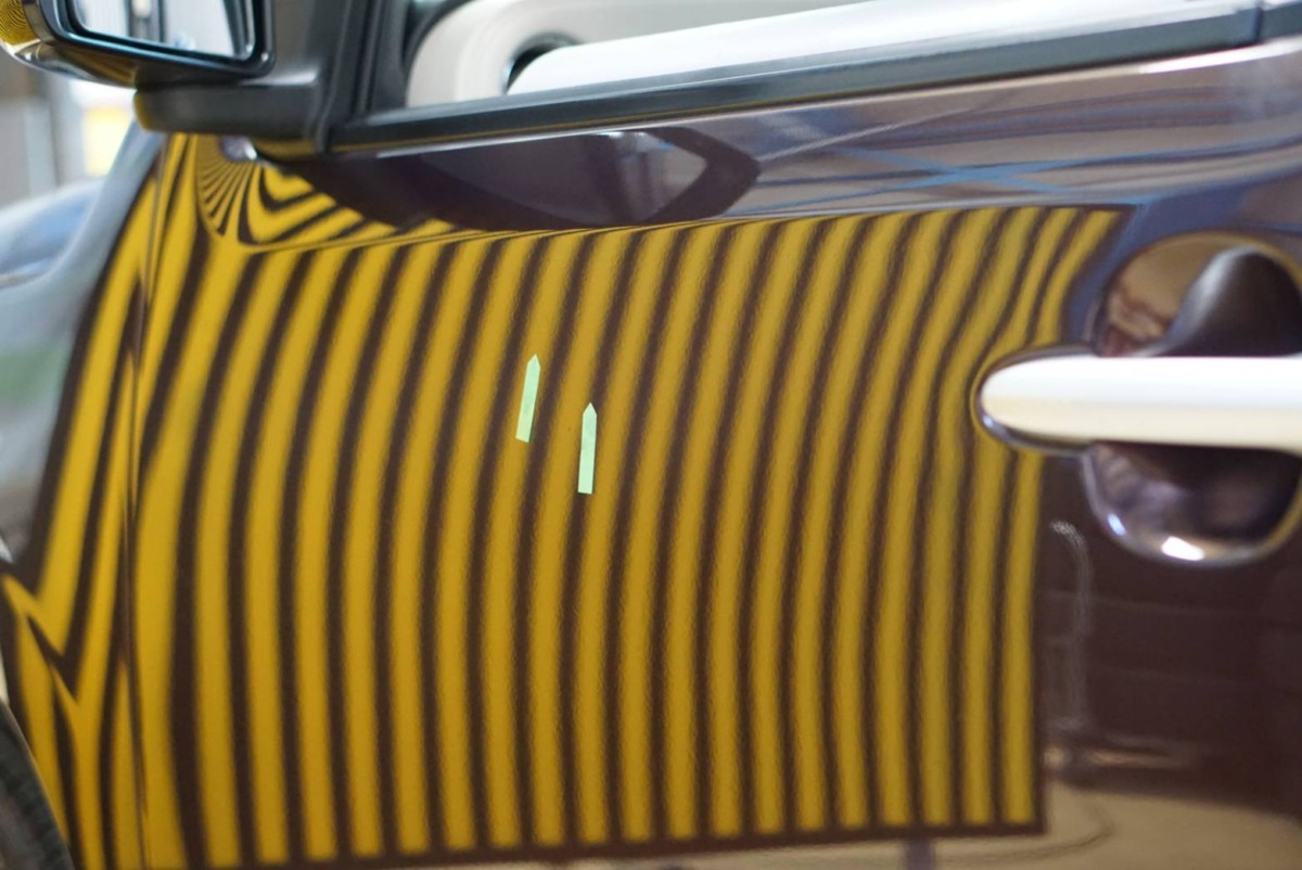 ラインボードで確認します。ヘコミのある個所と全体を確認します。