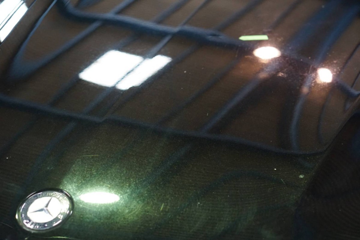 AMG C63 ボンネットにできたヘコミの施工です。