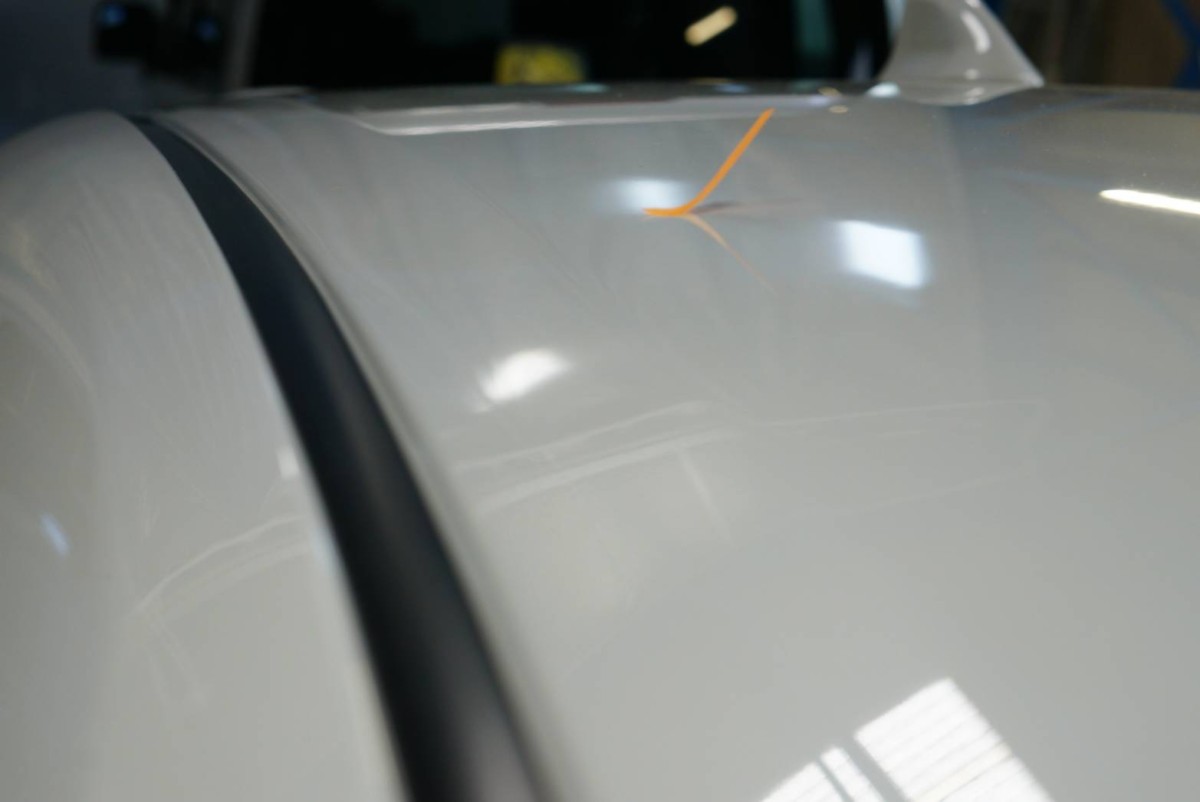 カローラスポーツ ルーフにできたヘコミの施工です。