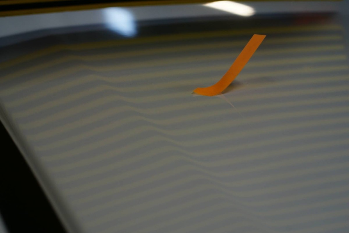 テープが貼ってある箇所にヘコミがあります。ラインボードを映すとこのように見えます。