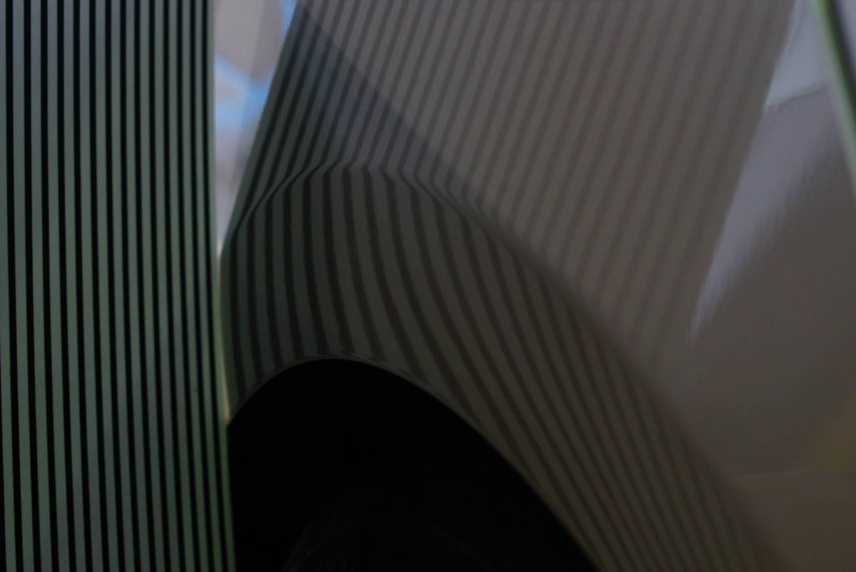 中央付近にヘコミがあります。景色を映してもはっきりわかります。