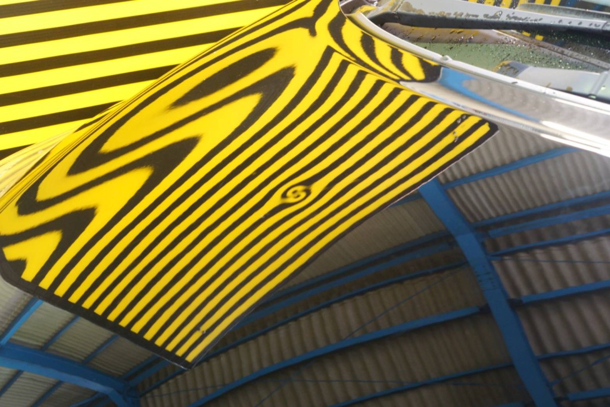 ボンネットにできたヘコミの施工です。