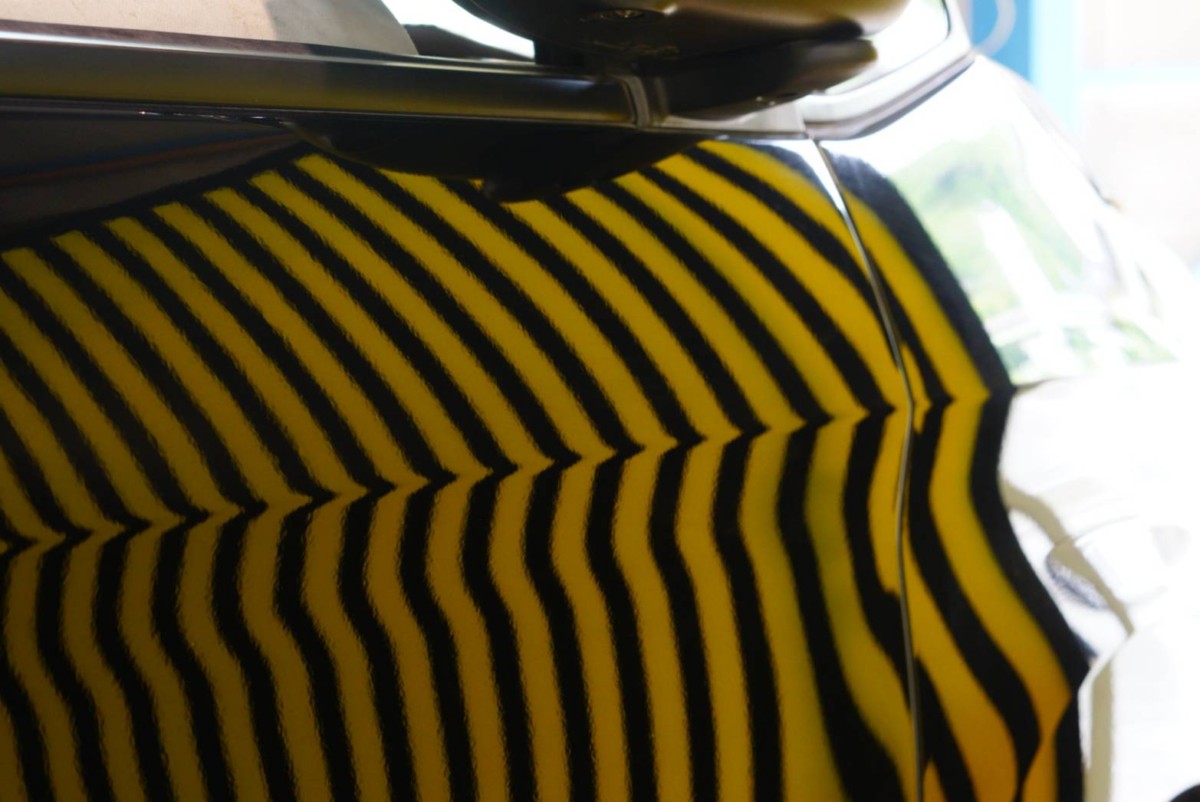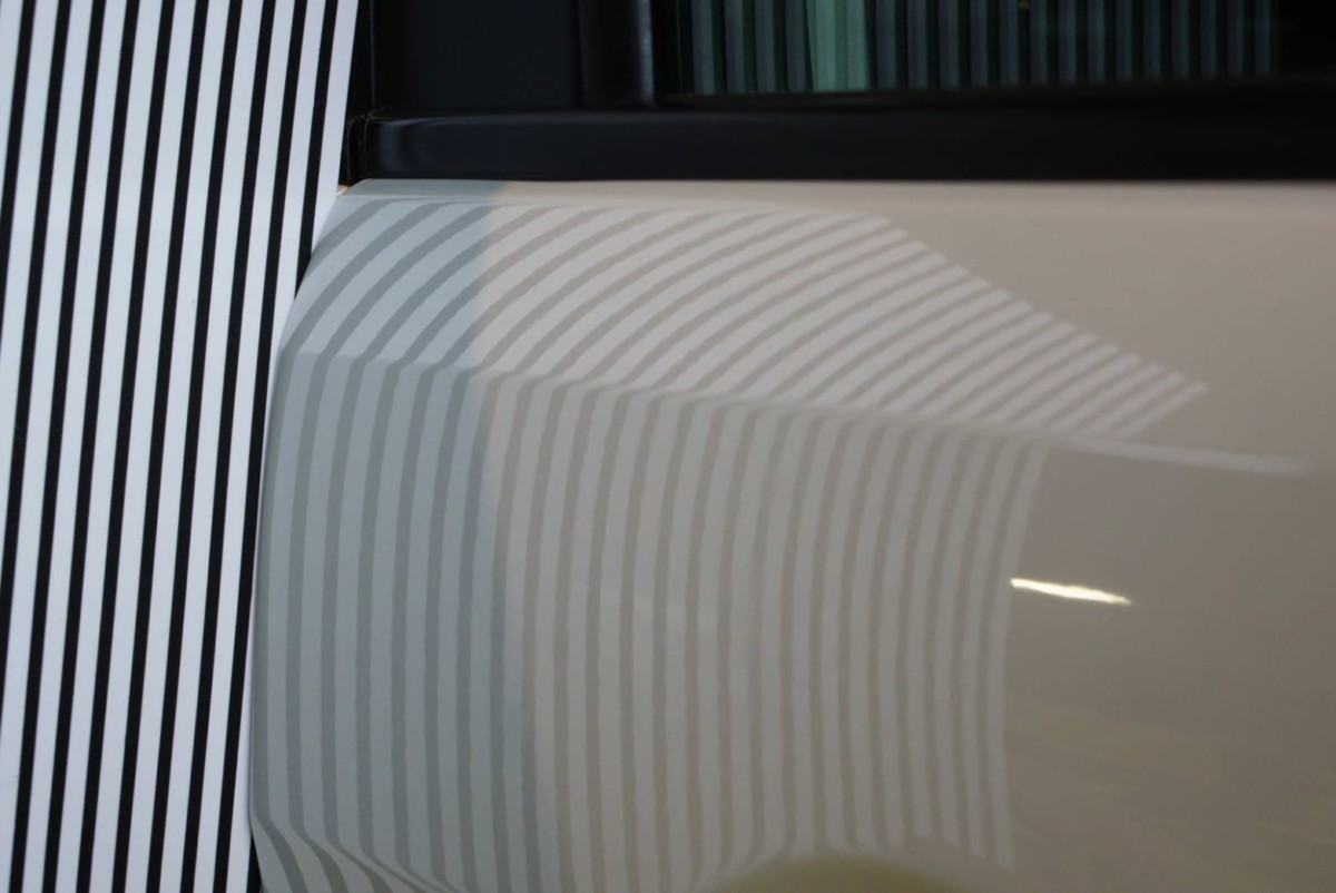 左リヤドア、プレスラインにできたヘコミです。