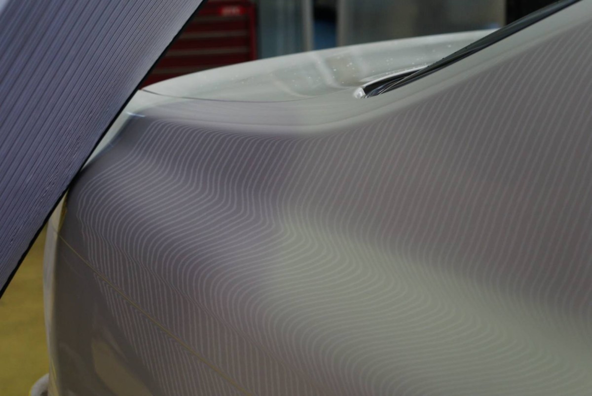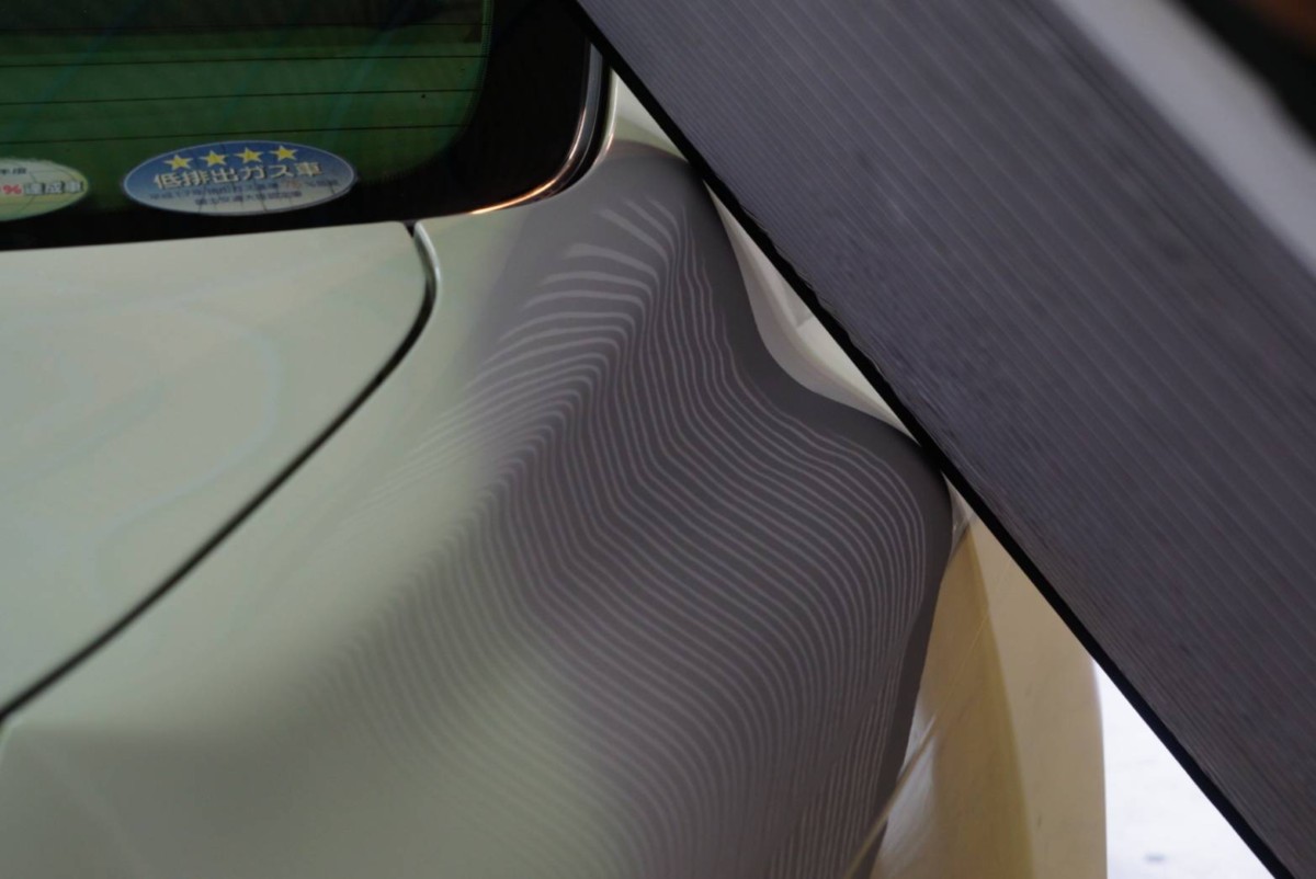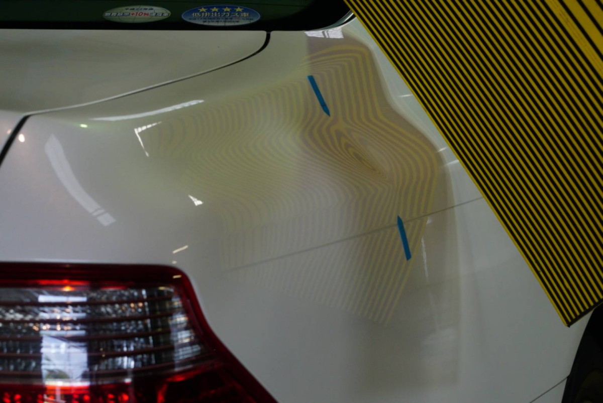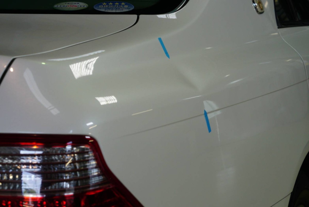 クォーターパネルにできたヘコミの施工です。