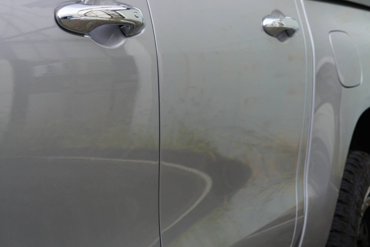 ハイラックス ドアにできたヘコミの施工です。
