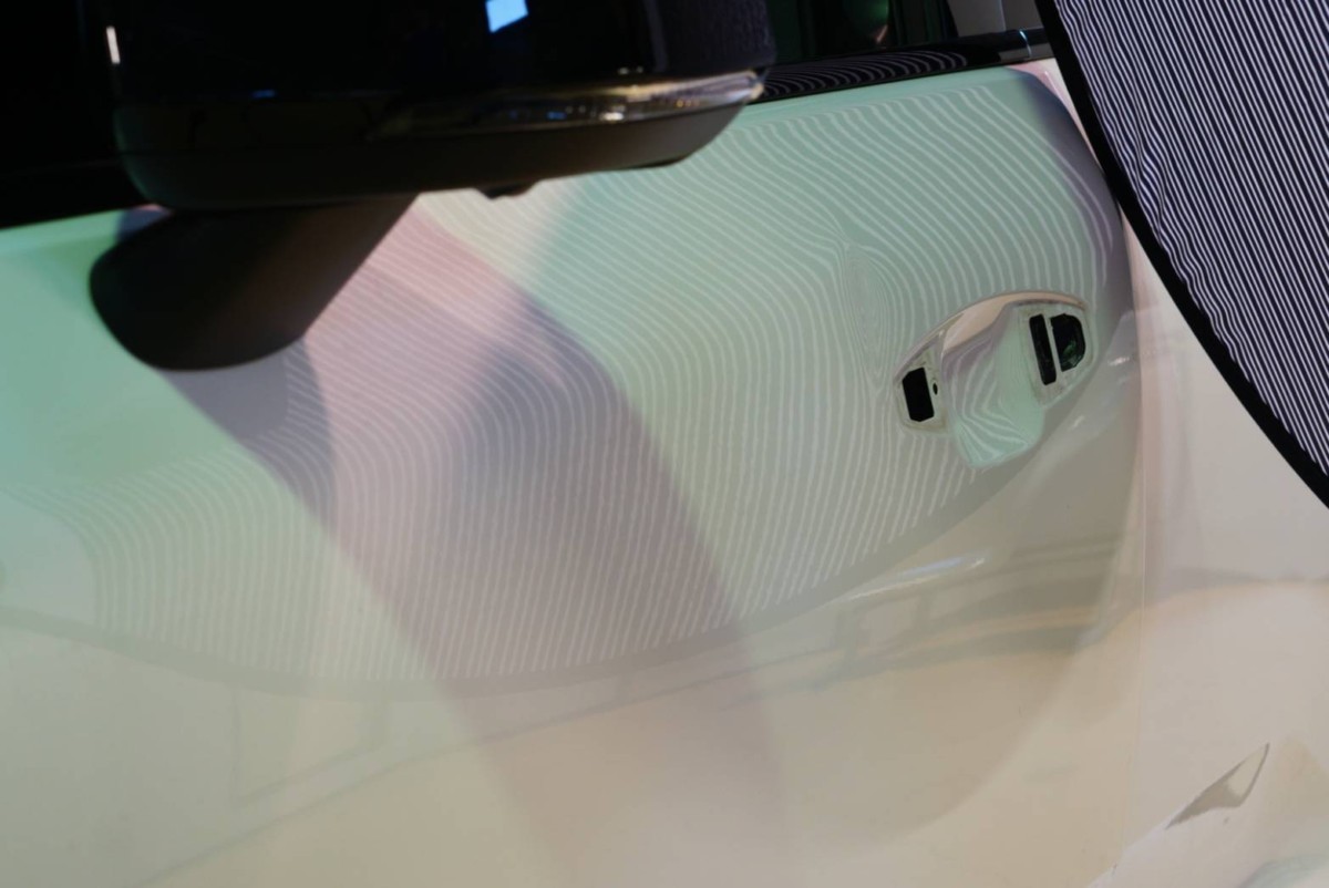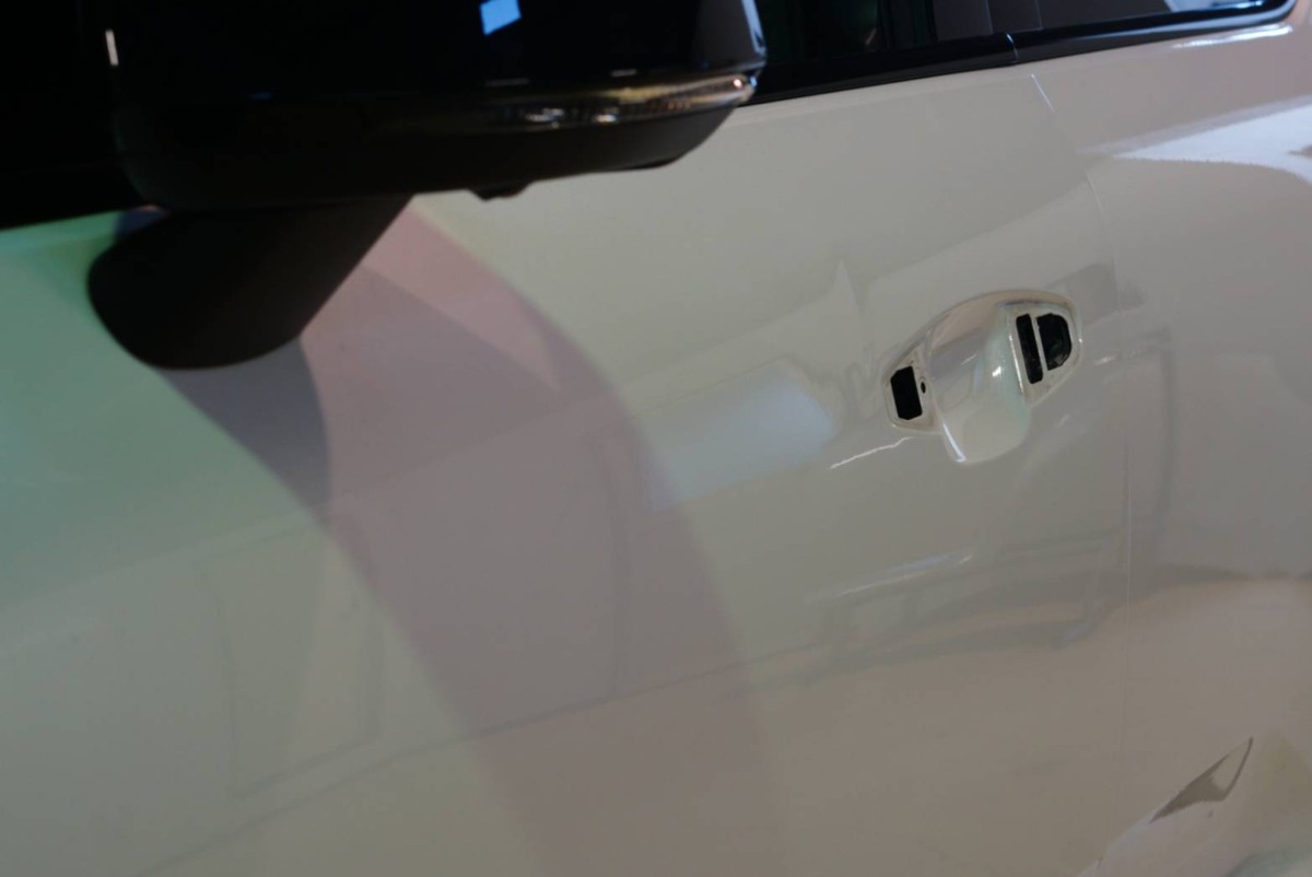 ボルボ ドアにできたヘコミの施工です。