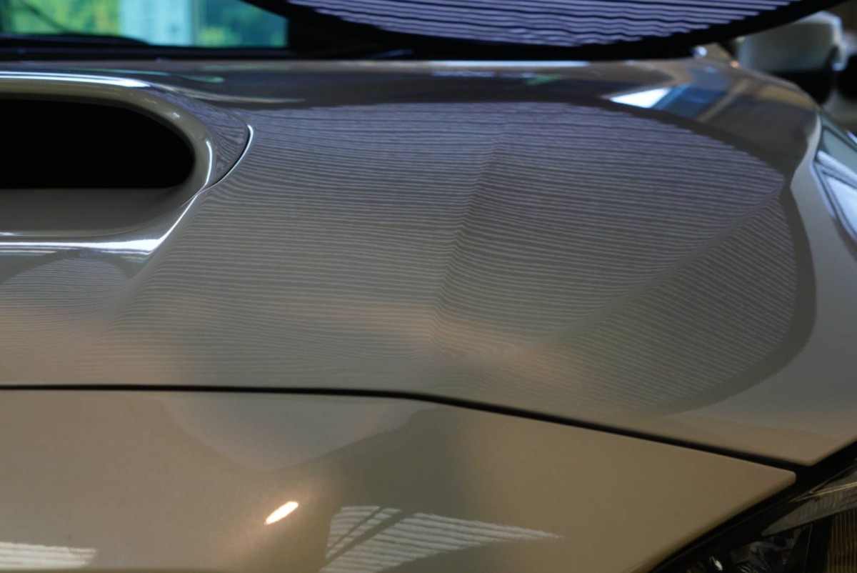 WRX ボンネットにできたヘコミの施工です。