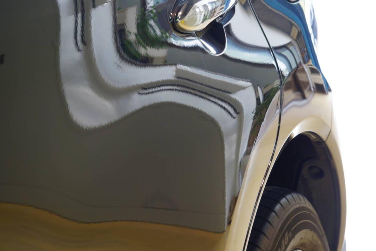 運転席ドアにできたヘコミです。乗車する際、どうしても目に入ってしまい気になるヘコミです。