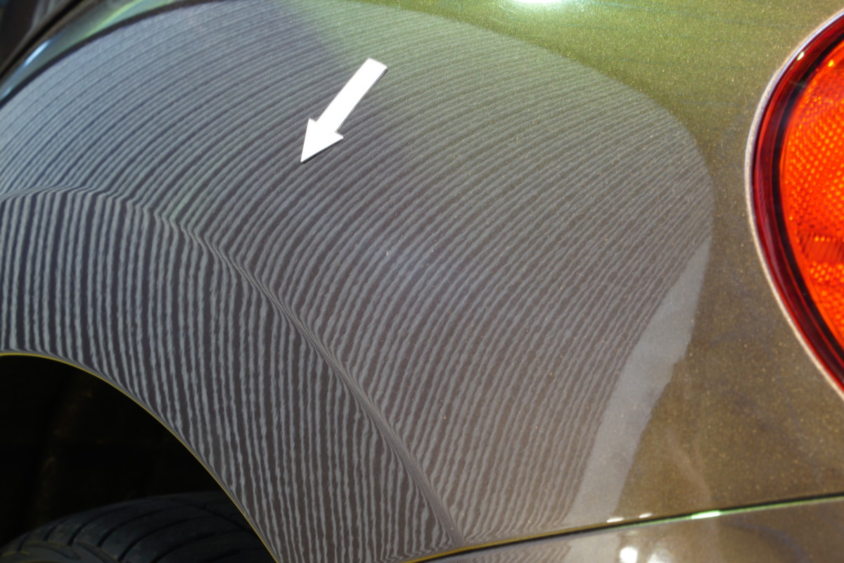 リアフェンダーのプレスライン上にヘコミがあります。